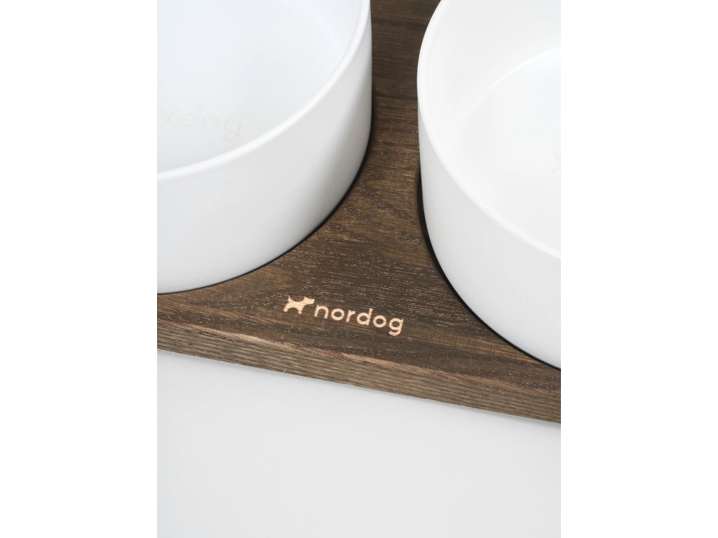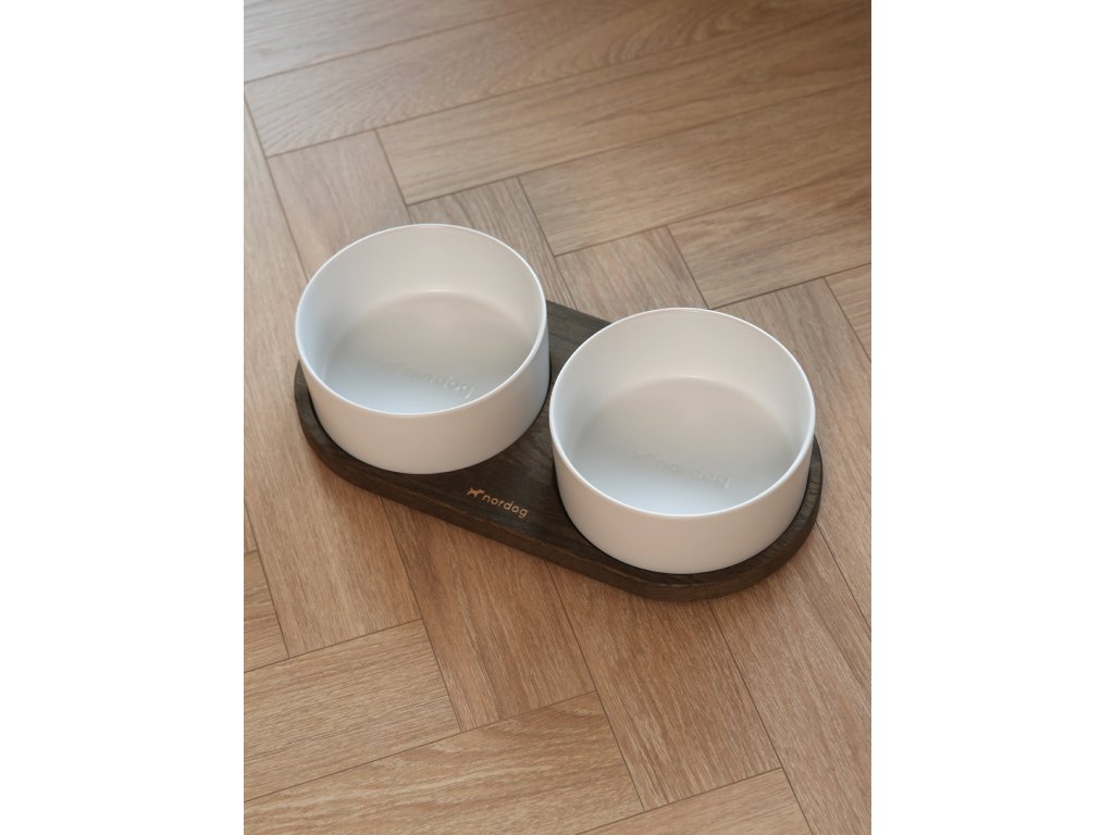 Set dvou misek a podložky z pravého dubového dřeva vytváří stabilní a elegantní prostor pro každodenní krmení – takový, který neruší interiér, ale přirozeně do něj zapadá.