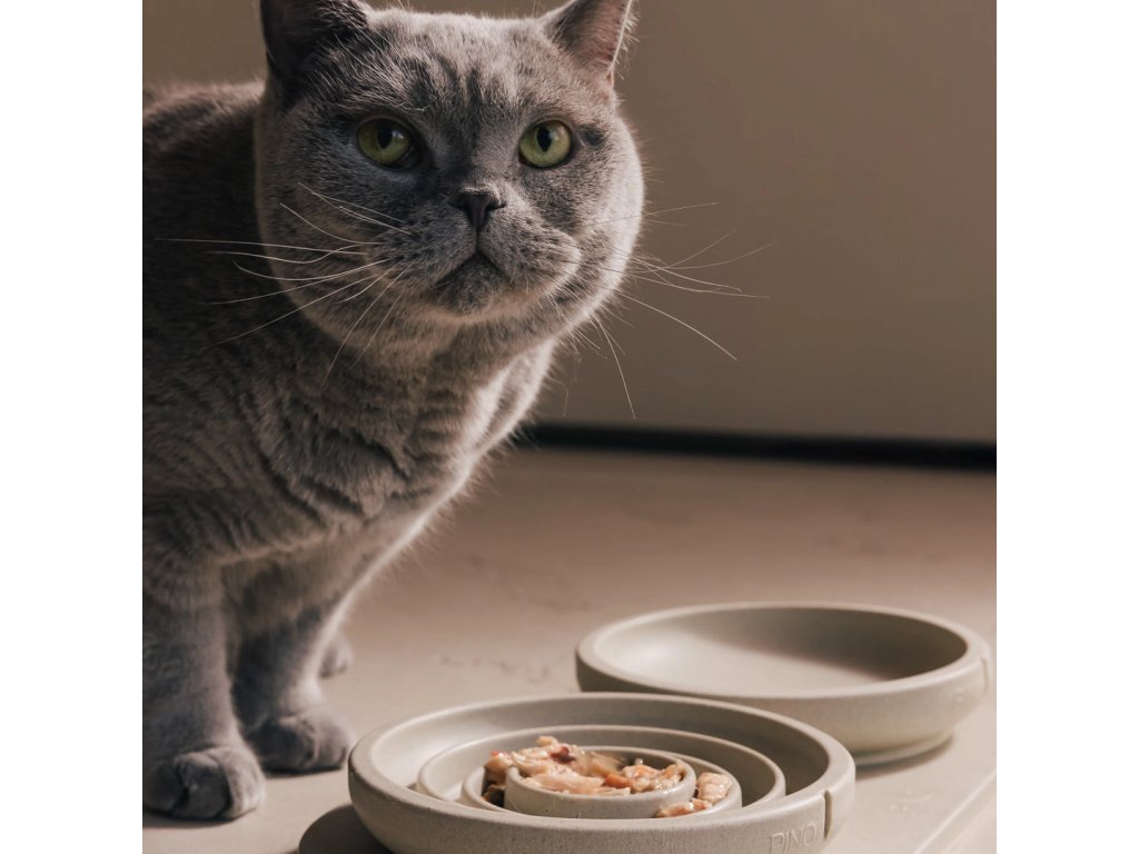 Miska pro kočky Pino je navržena tak, aby respektovala přirozené potřeby koček. Díky mělkému a širokému designu zabraňuje podráždění vousků, což umožňuje pohodlné a bezproblémové krmení.